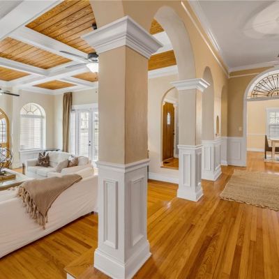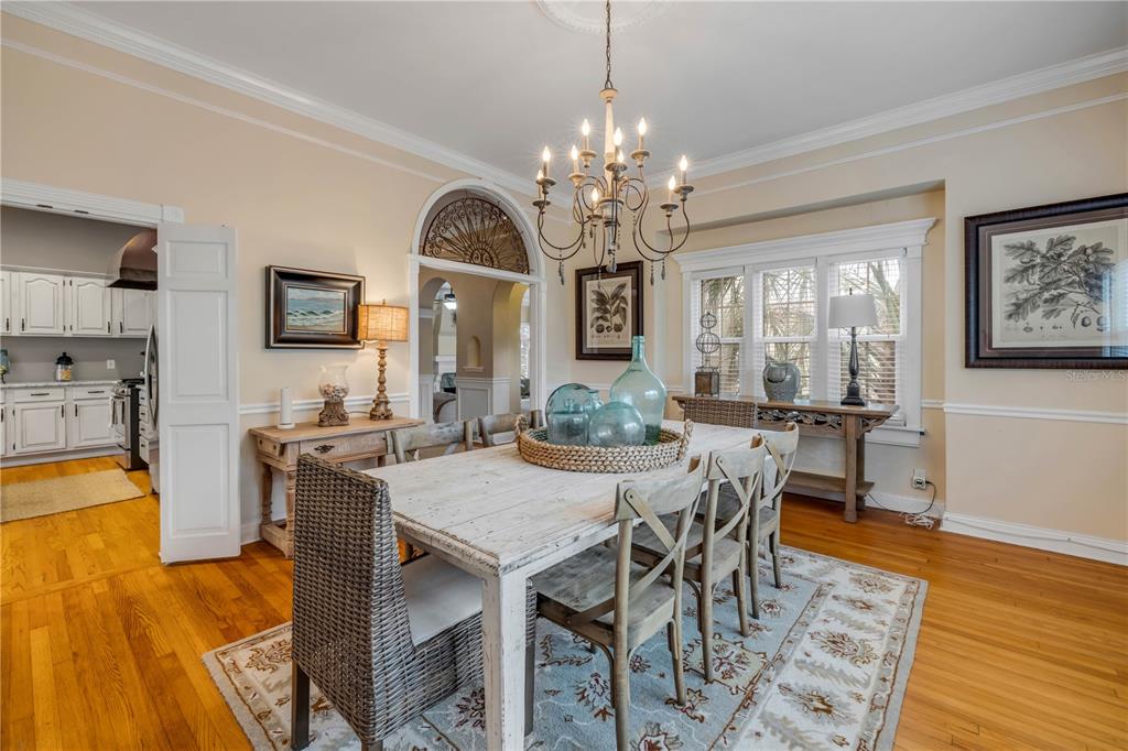 Coffered Ceiling(s), Crown Molding, Eating Space In Kitchen, High Ceilings