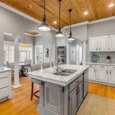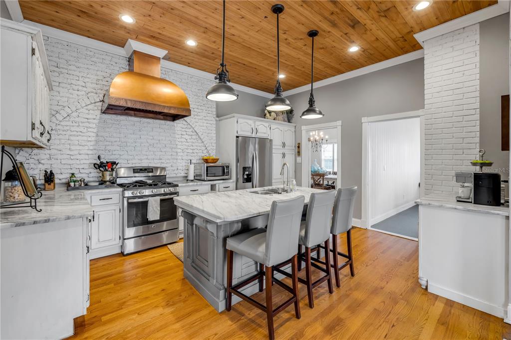 Coffered Ceiling(s), Crown Molding, Eating Space In Kitchen, High Ceilings