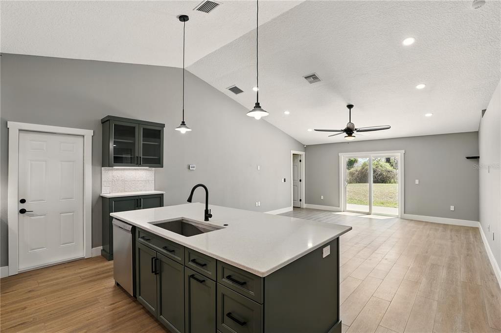 Built-in Features, Cathedral Ceiling(s), Ceiling Fan(s), Kitchen/Family Room Combo, Open Floorplan, Primary Bedroom Main Floor, Solid Surface Counters, Solid Wood Cabinets, Split Bedroom, Walk-In Closet(s)