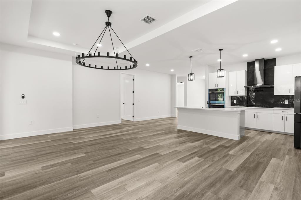 Ceiling Fan(s), Eating Space In Kitchen, High Ceilings, Kitchen/Family Room Combo, Open Floorplan, Solid Wood Cabinets, Thermostat, Vaulted Ceiling(s)