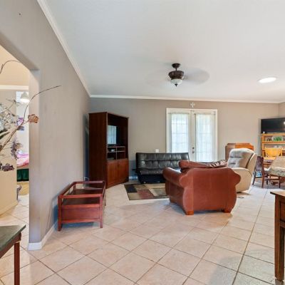 Ceiling Fan(s), Crown Molding, Eating Space In Kitchen, High Ceilings, Kitchen/Family Room Combo, Living Room/Dining Room Combo, Open Floorplan, Primary Bedroom Main Floor, Solid Surface Counters, Solid Wood Cabinets, Split Bedroom, Stone Counters, Thermostat, Walk-In Closet(s), Window Treatments