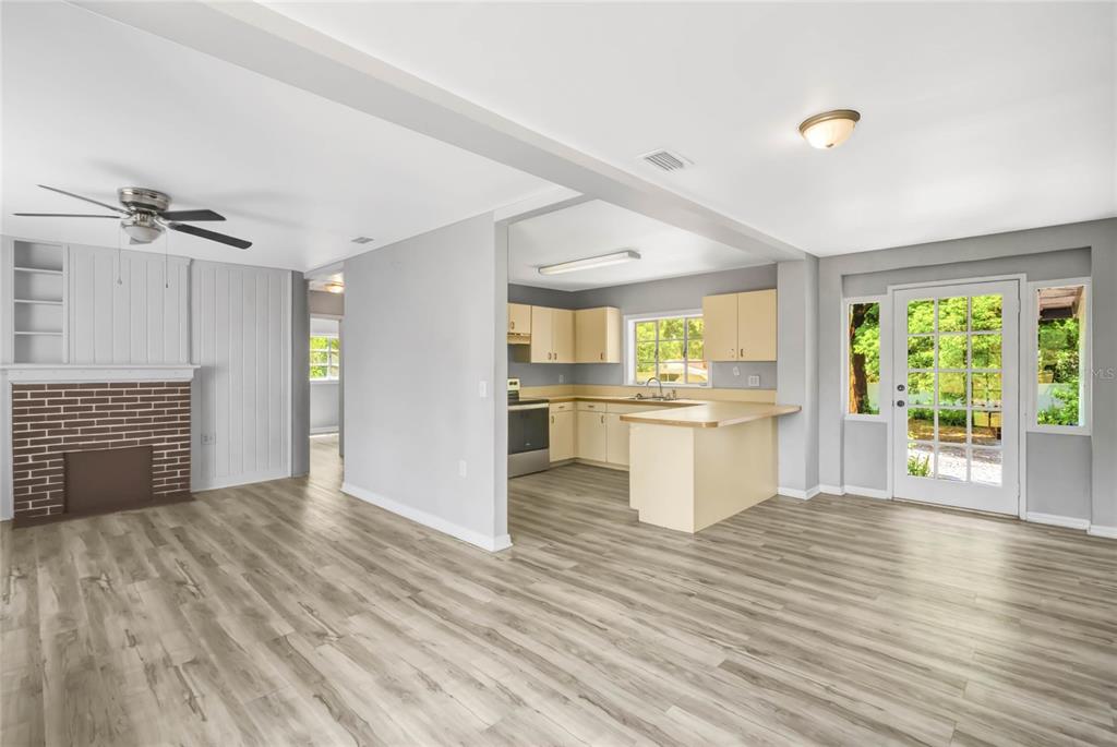 Ceiling Fan(s), Eating Space In Kitchen, Kitchen/Family Room Combo, Living Room/Dining Room Combo, Open Floorplan, Primary Bedroom Main Floor, Thermostat