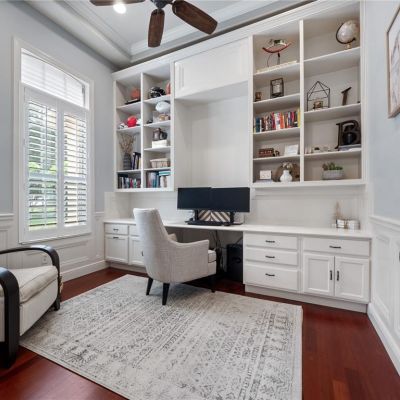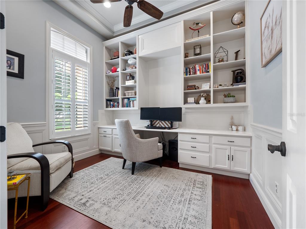 Built-in Features, Ceiling Fan(s), Crown Molding, Eating Space In Kitchen, High Ceilings, Kitchen/Family Room Combo, Living Room/Dining Room Combo, Open Floorplan, Primary Bedroom Main Floor, Solid Wood Cabinets, Split Bedroom, Stone Counters, Tray Ceiling(s), Walk-In Closet(s), Window Treatments