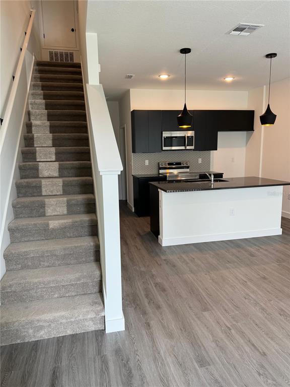 Living Room/Dining Room Combo, PrimaryBedroom Upstairs, Solid Surface Counters, Split Bedroom, Stone Counters, Thermostat, Walk-In Closet(s)