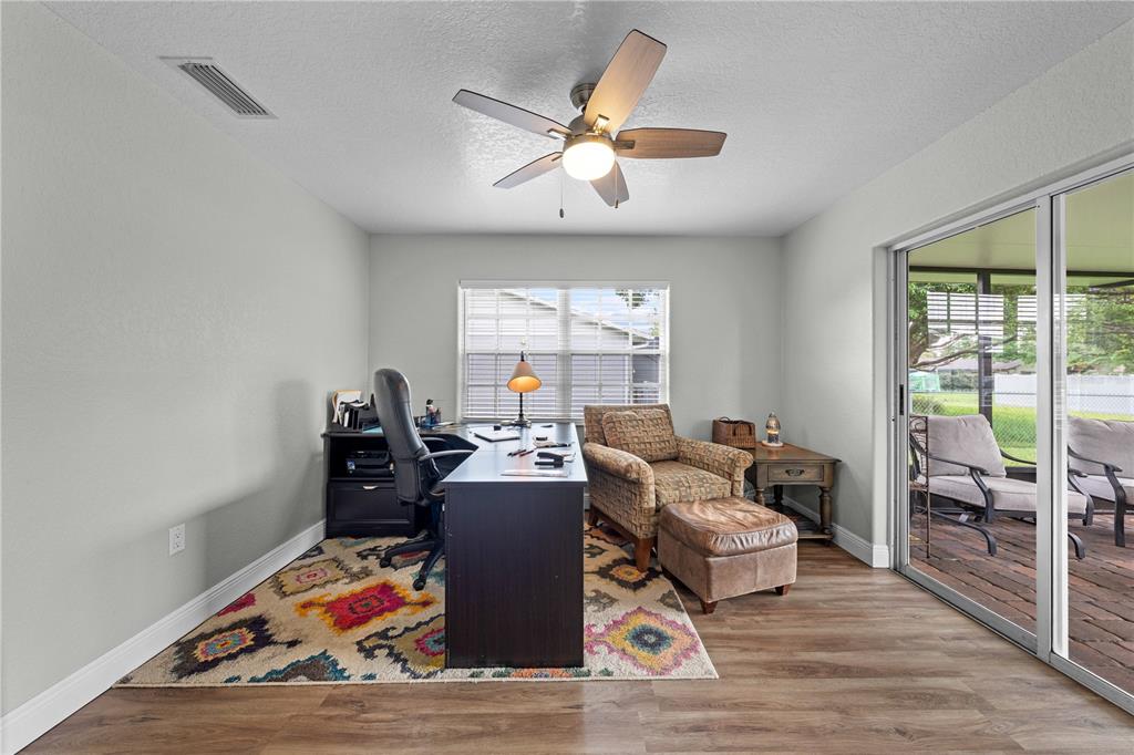 Ceiling Fan(s), Eating Space In Kitchen, Open Floorplan, Stone Counters