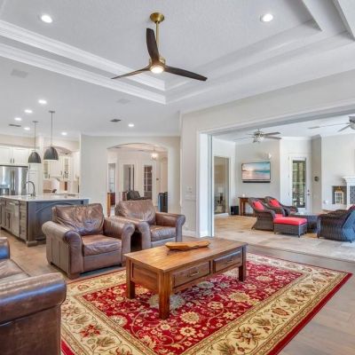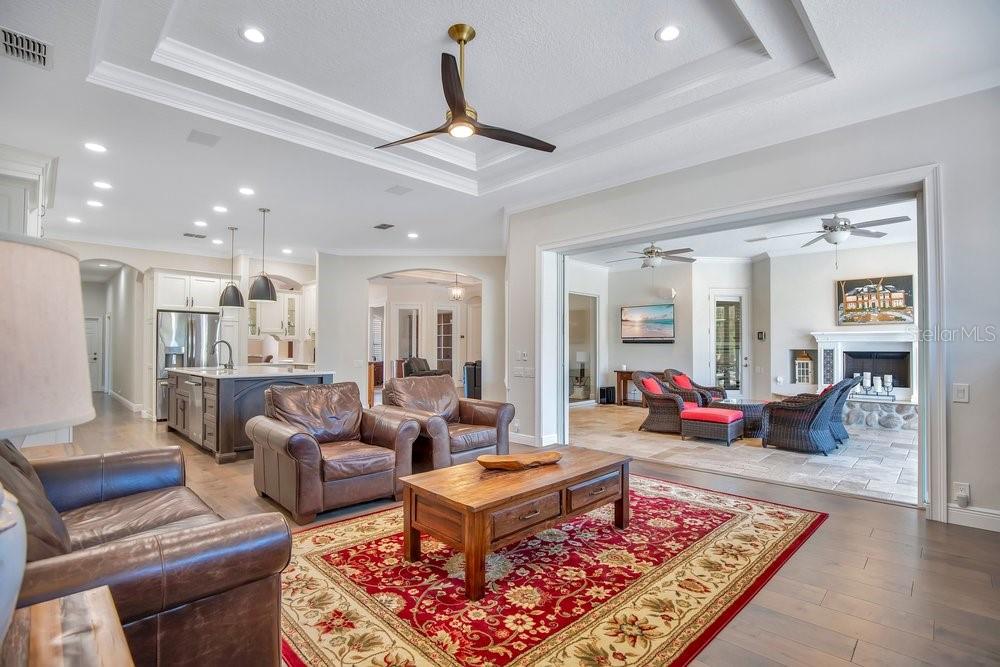 Attic Ventilator, Built-in Features, Ceiling Fan(s), Coffered Ceiling(s), Crown Molding, Eating Space In Kitchen, High Ceilings, Kitchen/Family Room Combo, Open Floorplan, Primary Bedroom Main Floor, Solid Surface Counters, Solid Wood Cabinets, Split Bedroom, Stone Counters, Thermostat, Tray Ceiling(s), Walk-In Closet(s)