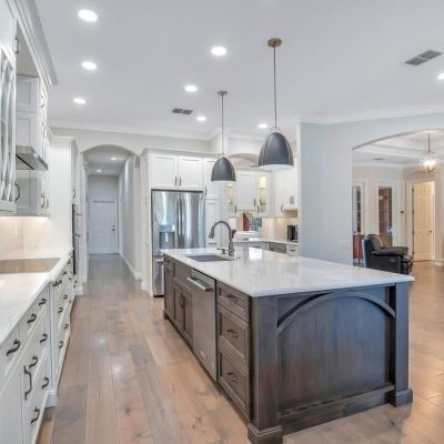 Porcelain Tile, Travertine, Hardwood