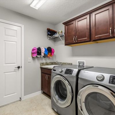 Bar Fridge, Dishwasher, Disposal, Dryer, Electric Water Heater, Microwave, Refrigerator, Washer, Water Softener