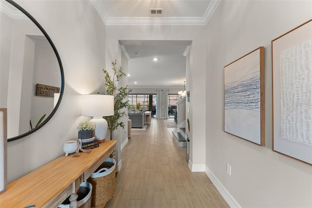 Built-in Features, Crown Molding, High Ceilings, Kitchen/Family Room Combo, Living Room/Dining Room Combo, Open Floorplan, PrimaryBedroom Upstairs, Walk-In Closet(s)