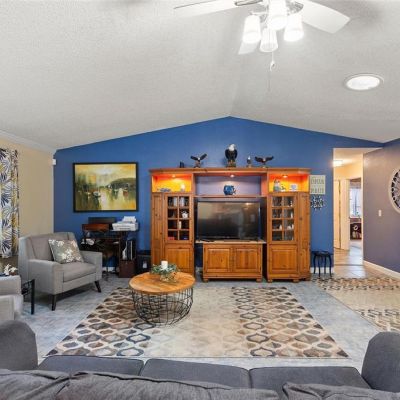 Cathedral Ceiling(s), Ceiling Fan(s), Crown Molding, High Ceilings, Kitchen/Family Room Combo, Living Room/Dining Room Combo, Open Floorplan, Primary Bedroom Main Floor, Skylight(s), Solid Surface Counters, Thermostat, Walk-In Closet(s)