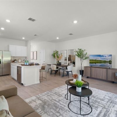 Eating Space In Kitchen, Kitchen/Family Room Combo, Living Room/Dining Room Combo, Open Floorplan, PrimaryBedroom Upstairs, Solid Surface Counters, Stone Counters, Thermostat, Walk-In Closet(s)