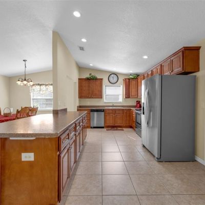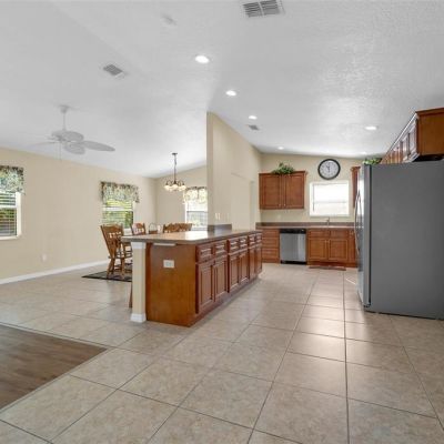 Cathedral Ceiling(s), Ceiling Fan(s), Kitchen/Family Room Combo, Living Room/Dining Room Combo, Open Floorplan, Thermostat