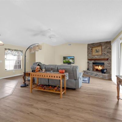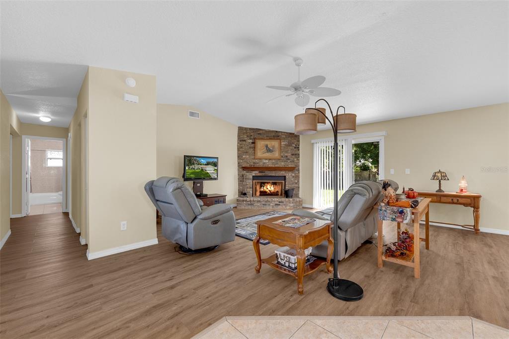 Cathedral Ceiling(s), Ceiling Fan(s), Kitchen/Family Room Combo, Living Room/Dining Room Combo, Open Floorplan, Thermostat