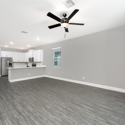 Attic Ventilator, Ceiling Fan(s), High Ceilings, Kitchen/Family Room Combo, Open Floorplan, Pest Guard System, Stone Counters, Thermostat, Walk-In Closet(s), Window Treatments