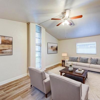 High Ceilings, Living Room/Dining Room Combo, Open Floorplan, Skylight(s), Solid Wood Cabinets, Thermostat, Window Treatments