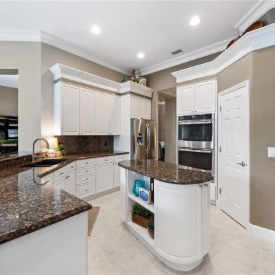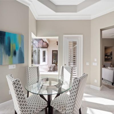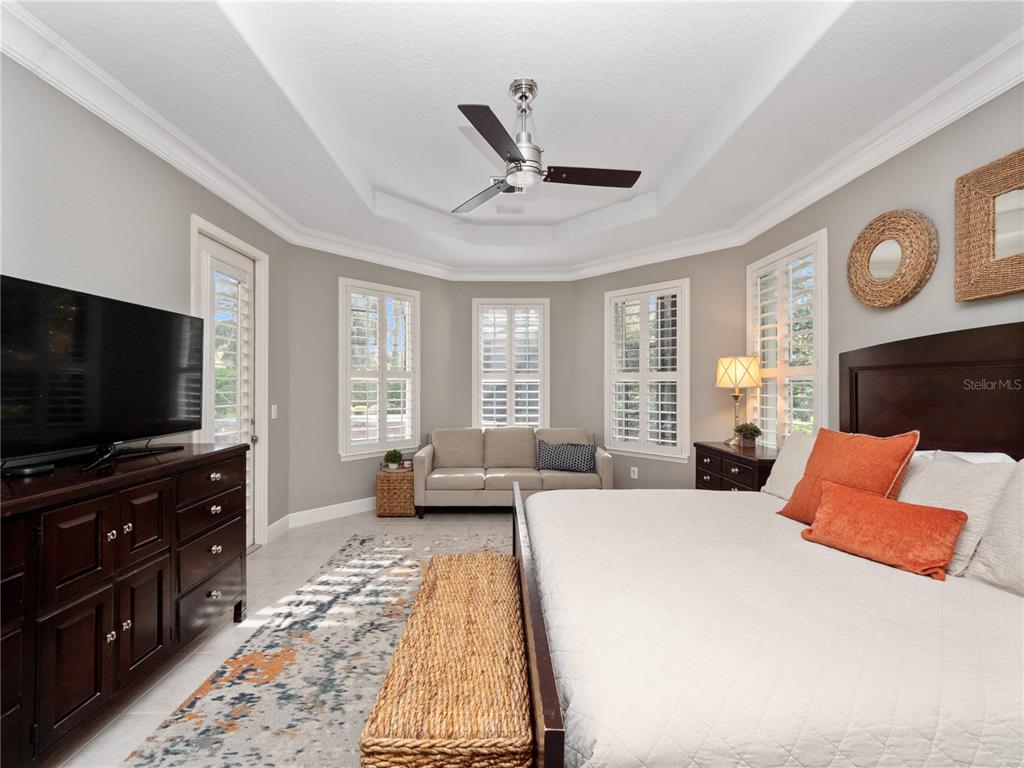 Ceiling Fan(s), Coffered Ceiling(s), Crown Molding, Eating Space In Kitchen, High Ceilings, Kitchen/Family Room Combo, Living Room/Dining Room Combo, Primary Bedroom Main Floor, Split Bedroom, Stone Counters, Walk-In Closet(s)