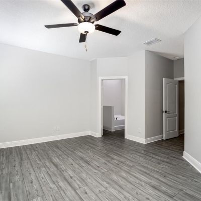 Attic Ventilator, Ceiling Fan(s), High Ceilings, Kitchen/Family Room Combo, Open Floorplan, Pest Guard System, Stone Counters, Thermostat, Walk-In Closet(s), Window Treatments