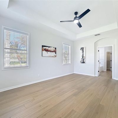Ceiling Fan(s), High Ceilings, Kitchen/Family Room Combo, Living Room/Dining Room Combo, Open Floorplan, Primary Bedroom Main Floor, Solid Surface Counters, Split Bedroom, Walk-In Closet(s)