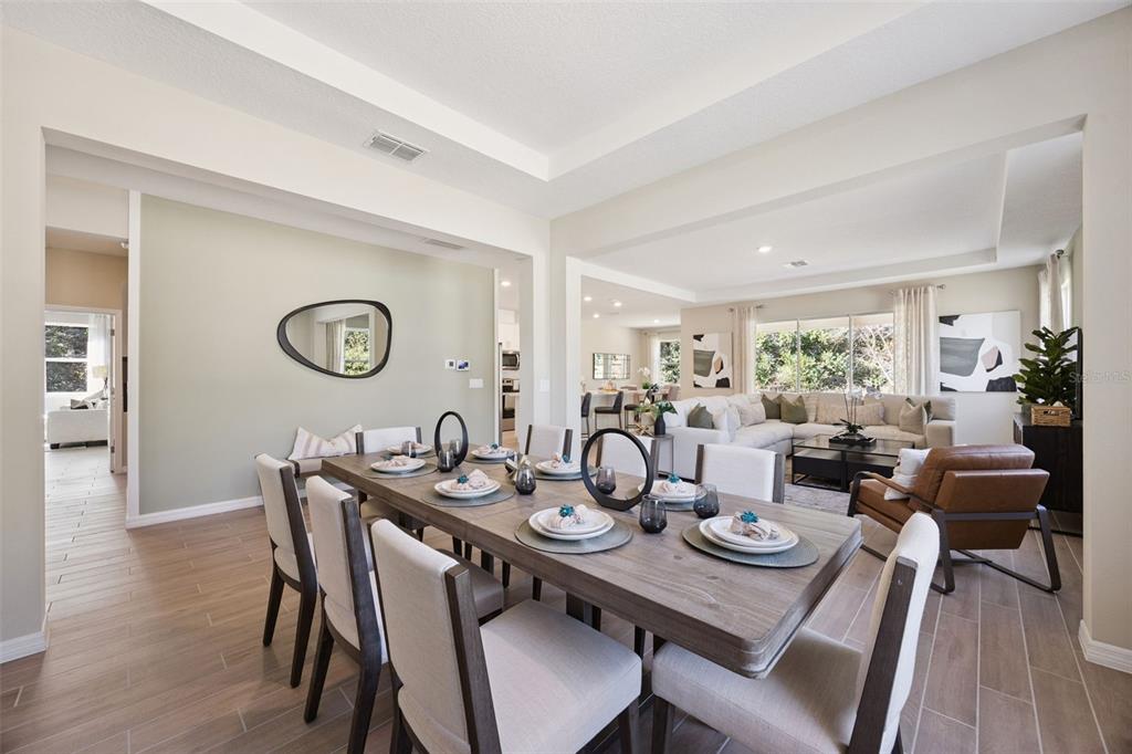 Eating Space In Kitchen, Kitchen/Family Room Combo, Open Floorplan, Solid Surface Counters, Split Bedroom, Stone Counters, Thermostat, Tray Ceiling(s), Walk-In Closet(s)