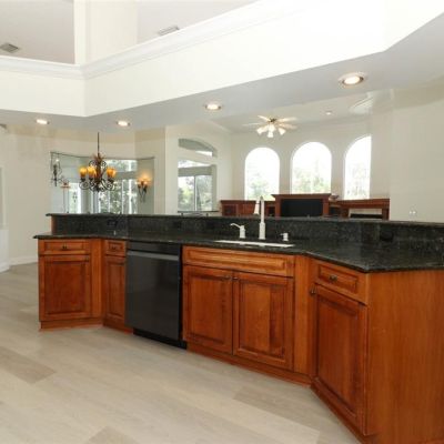 Cathedral Ceiling(s), Ceiling Fan(s), Crown Molding, Eating Space In Kitchen, Kitchen/Family Room Combo, Primary Bedroom Main Floor, Solid Surface Counters, Solid Wood Cabinets, Split Bedroom, Stone Counters, Tray Ceiling(s), Vaulted Ceiling(s), Walk-In Closet(s), Wet Bar