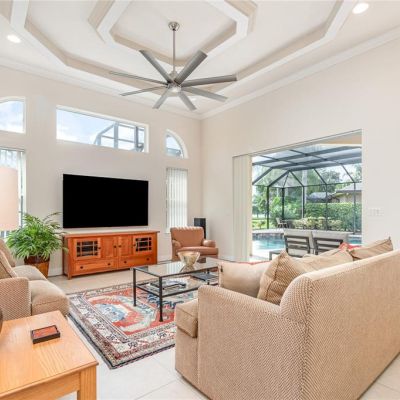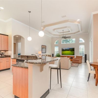 Ceiling Fan(s), Eating Space In Kitchen, High Ceilings, Open Floorplan, Primary Bedroom Main Floor, Stone Counters, Walk-In Closet(s)