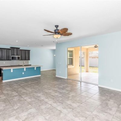 Ceiling Fan(s), Eating Space In Kitchen, High Ceilings, Kitchen/Family Room Combo, Open Floorplan, Primary Bedroom Main Floor, Solid Surface Counters, Stone Counters, Thermostat, Tray Ceiling(s), Walk-In Closet(s)