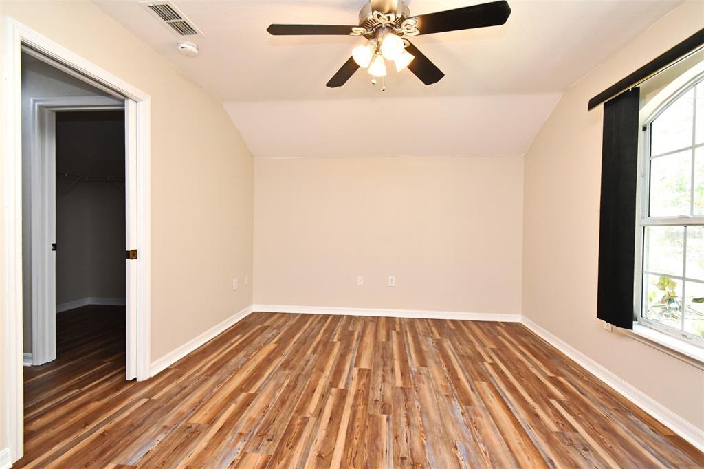Cathedral Ceiling(s), Ceiling Fan(s), Eating Space In Kitchen, Living Room/Dining Room Combo, Open Floorplan, Primary Bedroom Main Floor, Solid Surface Counters, Split Bedroom, Walk-In Closet(s), Window Treatments