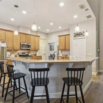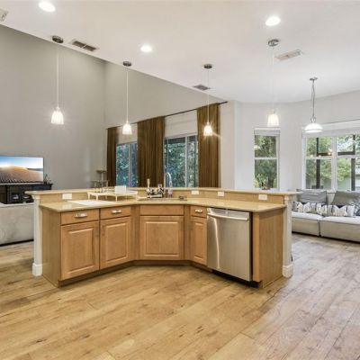 Ceiling Fan(s), Eating Space In Kitchen, High Ceilings, Kitchen/Family Room Combo, L Dining, Open Floorplan, Solid Surface Counters, Solid Wood Cabinets, Thermostat, Tray Ceiling(s), Walk-In Closet(s)