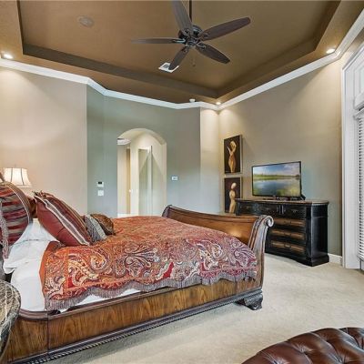 The owners' retreat boasts two spacious closets adjoining a spa-like bath with a sumptuous walk-in shower and his and hers vanities.