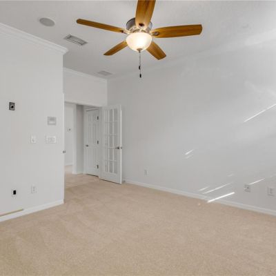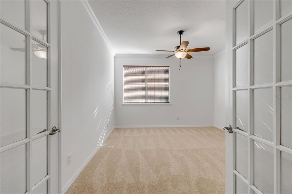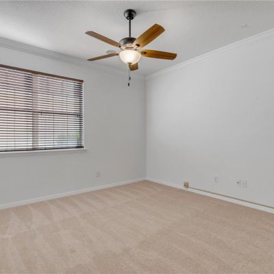 Ceiling Fan(s), Crown Molding, High Ceilings, Kitchen/Family Room Combo, Living Room/Dining Room Combo, Open Floorplan, Primary Bedroom Main Floor, Window Treatments
