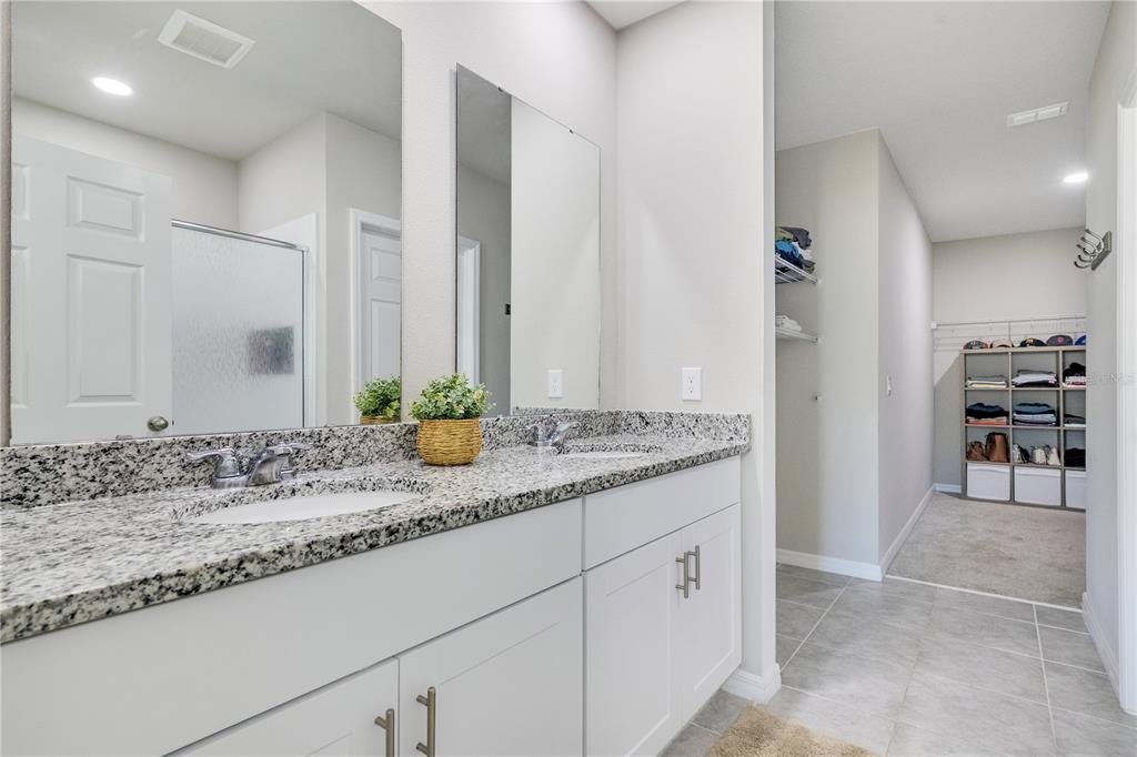 High Ceilings, Kitchen/Family Room Combo, Open Floorplan, PrimaryBedroom Upstairs, Solid Wood Cabinets, Split Bedroom, Stone Counters, Thermostat