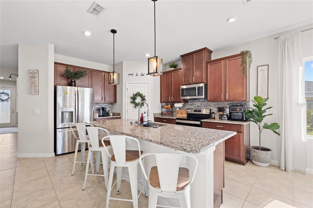 Ceiling Fan(s), Eating Space In Kitchen, High Ceilings, Kitchen/Family Room Combo, Open Floorplan, Split Bedroom, Walk-In Closet(s)