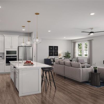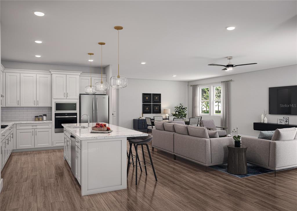 High Ceilings, Kitchen/Family Room Combo, Living Room/Dining Room Combo, Open Floorplan, Solid Surface Counters, Stone Counters, Thermostat, Walk-In Closet(s)