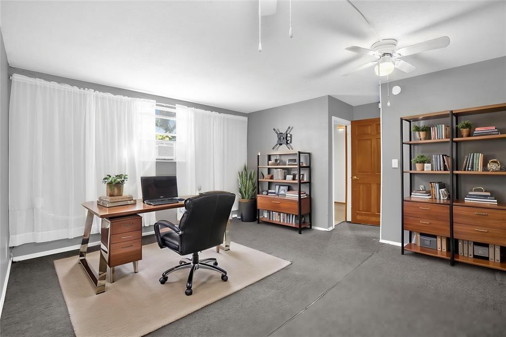Ceiling Fan(s), Eating Space In Kitchen, Thermostat, Window Treatments
