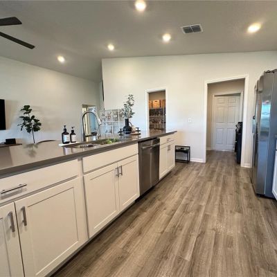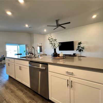 Cathedral Ceiling(s), Ceiling Fan(s), High Ceilings, Living Room/Dining Room Combo, Open Floorplan, Smart Home, Stone Counters, Thermostat, Tray Ceiling(s), Walk-In Closet(s)