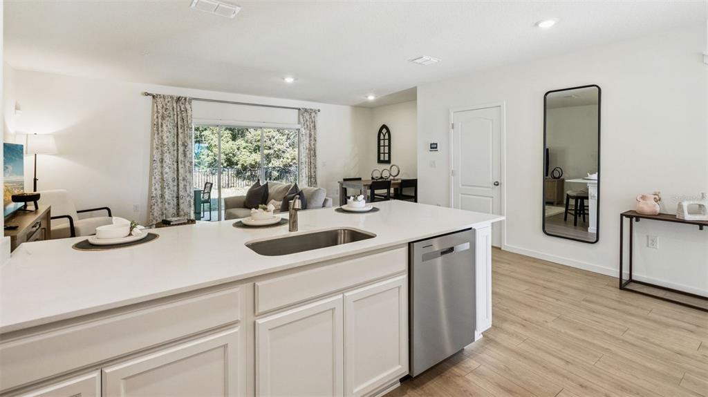 Eating Space In Kitchen, Kitchen/Family Room Combo, Living Room/Dining Room Combo, Open Floorplan, PrimaryBedroom Upstairs, Solid Surface Counters, Stone Counters, Thermostat, Walk-In Closet(s)