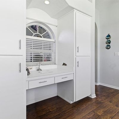 Built-in Features, Ceiling Fan(s), Crown Molding, Eating Space In Kitchen, High Ceilings, Living Room/Dining Room Combo, Open Floorplan, Solid Surface Counters, Split Bedroom, Stone Counters, Walk-In Closet(s), Window Treatments