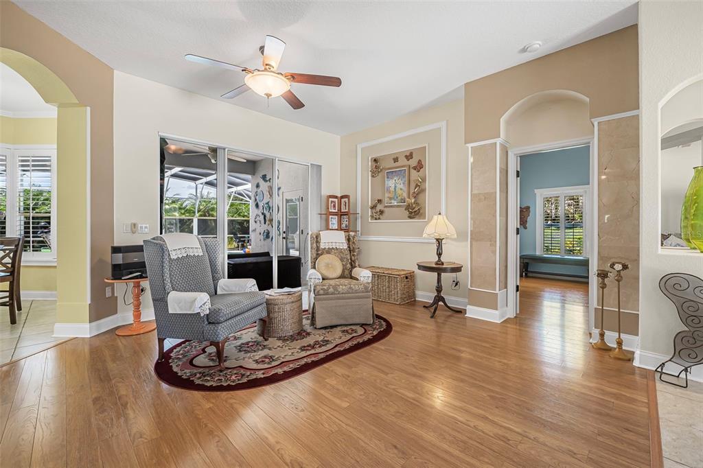 Ceiling Fan(s), Crown Molding, High Ceilings, Open Floorplan