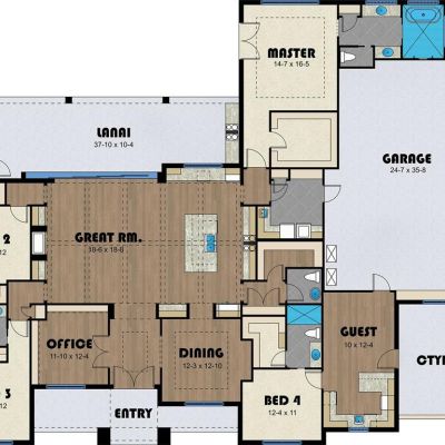 Coffered Ceiling(s), Crown Molding, High Ceilings, Kitchen/Family Room Combo, Open Floorplan, Primary Bedroom Main Floor, Solid Surface Counters, Solid Wood Cabinets, Split Bedroom, Thermostat, Walk-In Closet(s)