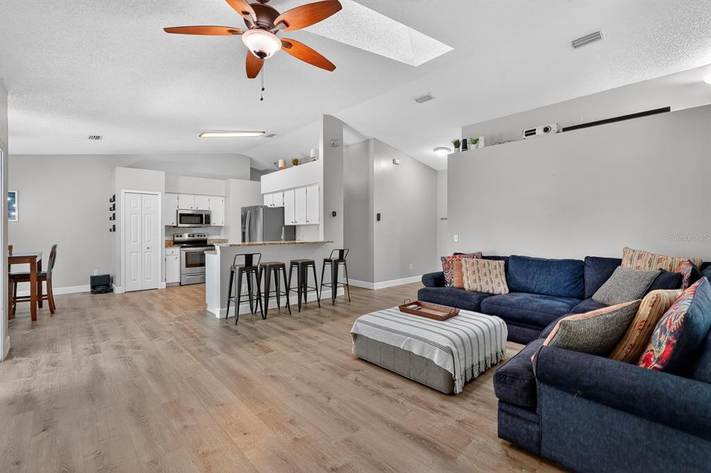 Ceiling Fan(s), Skylight(s), Stone Counters, Vaulted Ceiling(s), Window Treatments