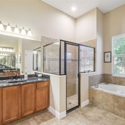 Ceiling Fan(s), Crown Molding, Eating Space In Kitchen, High Ceilings, Split Bedroom, Stone Counters, Walk-In Closet(s)