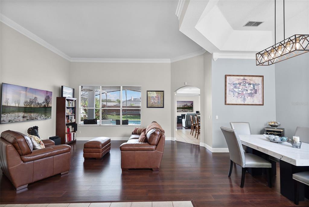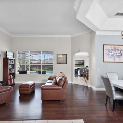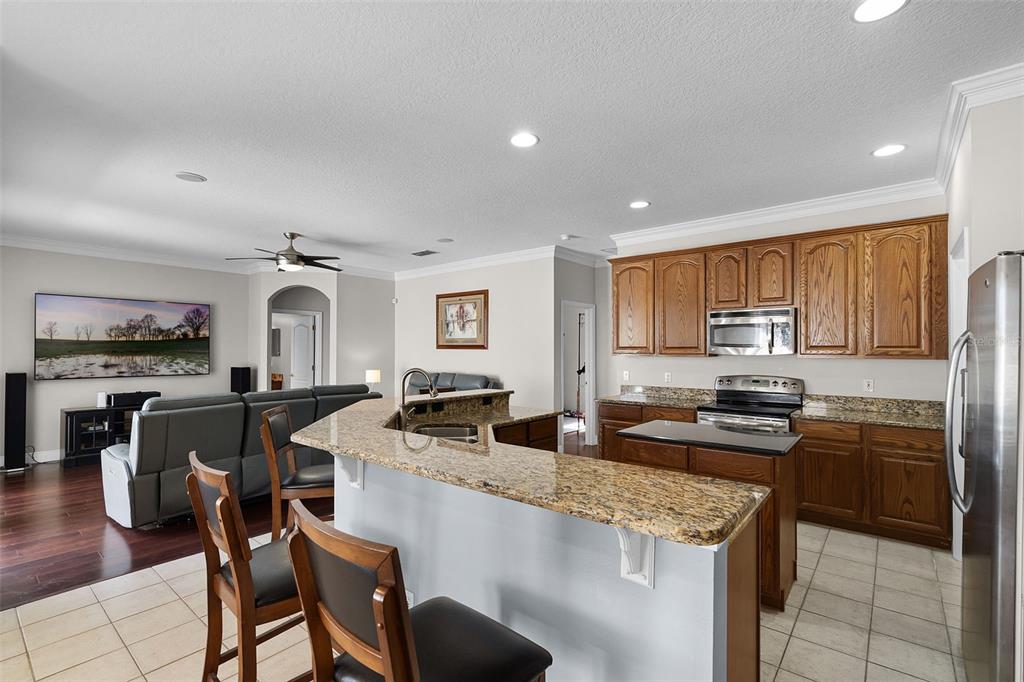 Ceiling Fan(s), Coffered Ceiling(s), Eating Space In Kitchen, High Ceilings, Kitchen/Family Room Combo, Living Room/Dining Room Combo, Open Floorplan, Primary Bedroom Main Floor, Solid Wood Cabinets, Split Bedroom, Stone Counters, Tray Ceiling(s), Walk-In Closet(s)