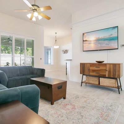 Ceiling Fan(s), Coffered Ceiling(s), Eating Space In Kitchen, High Ceilings, Open Floorplan, Primary Bedroom Main Floor, Solid Surface Counters, Solid Wood Cabinets, Split Bedroom, Walk-In Closet(s)