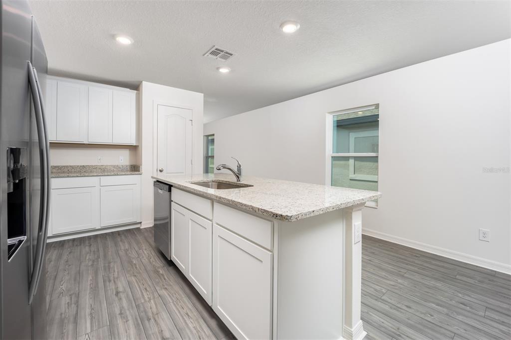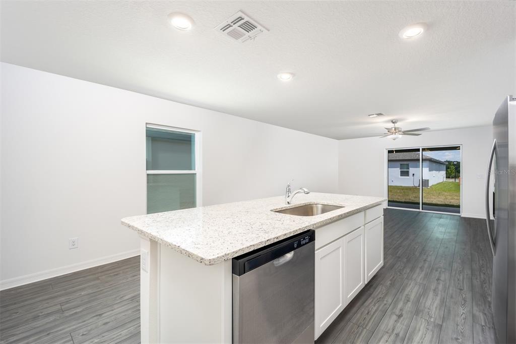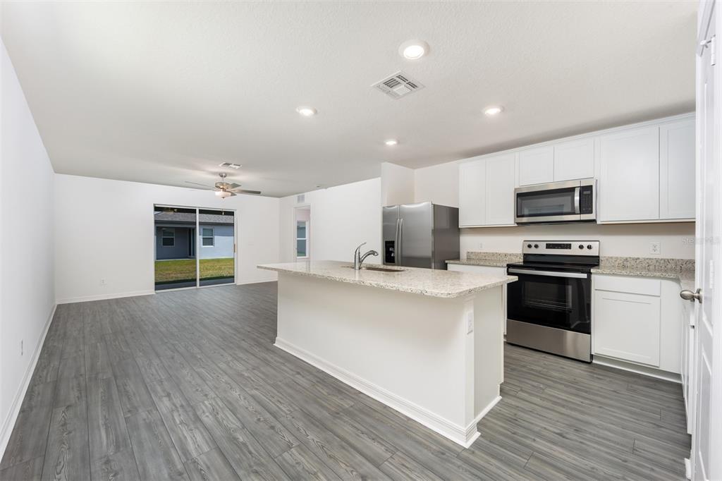 Ceiling Fan(s), Kitchen/Family Room Combo, Open Floorplan, Pest Guard System, Primary Bedroom Main Floor, Stone Counters, Thermostat, Walk-In Closet(s), Window Treatments