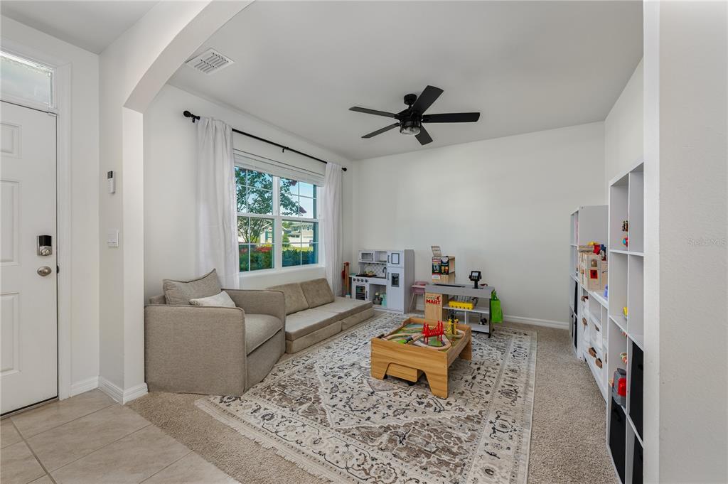 Ceiling Fan(s), Eating Space In Kitchen, Kitchen/Family Room Combo, Open Floorplan, Stone Counters