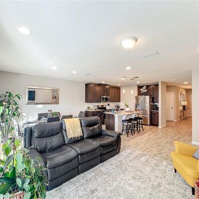 Ceiling Fan(s), Kitchen/Family Room Combo, Living Room/Dining Room Combo, Open Floorplan, PrimaryBedroom Upstairs, Solid Surface Counters, Split Bedroom, Walk-In Closet(s)