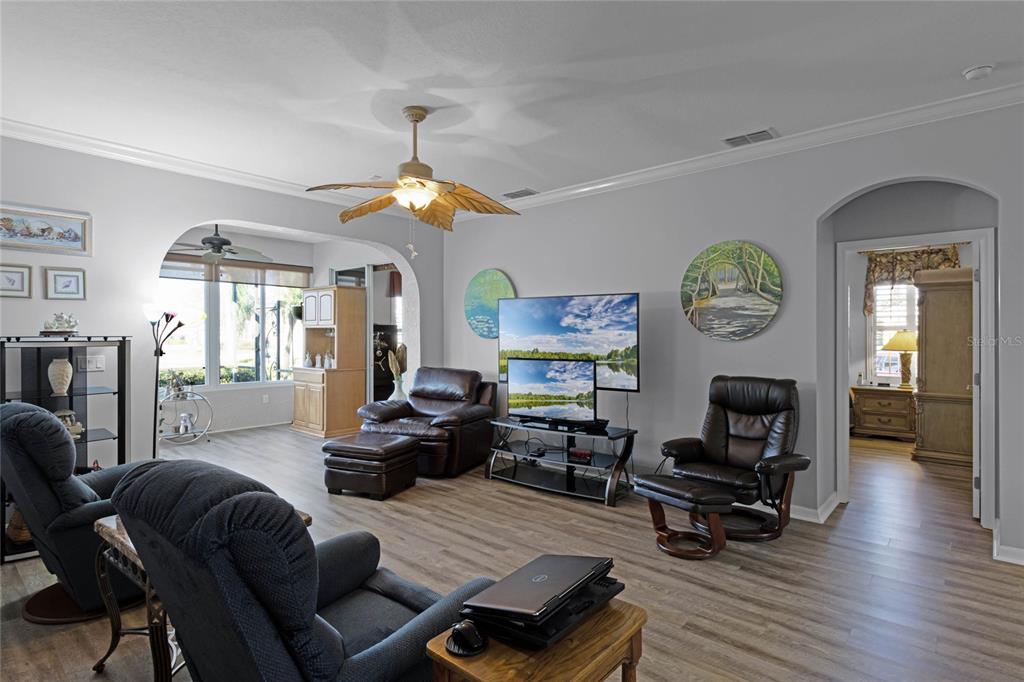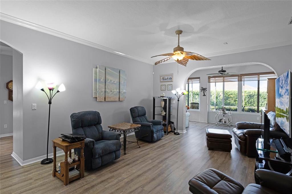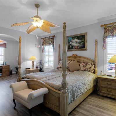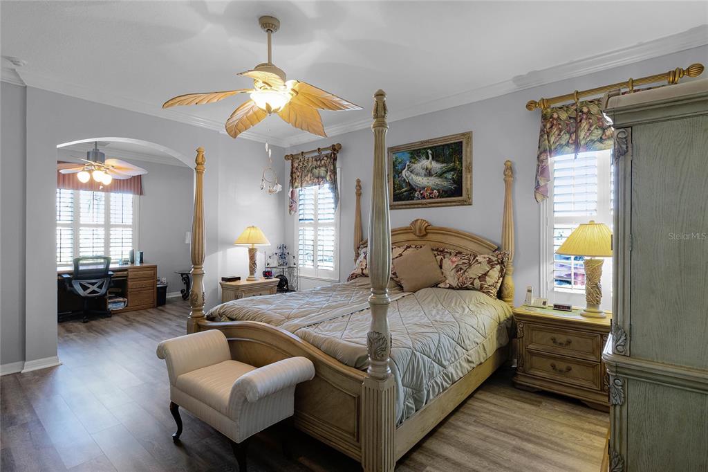 Ceiling Fan(s), Chair Rail, Crown Molding, Eating Space In Kitchen, High Ceilings, Primary Bedroom Main Floor, Solid Wood Cabinets, Split Bedroom, Walk-In Closet(s), Window Treatments