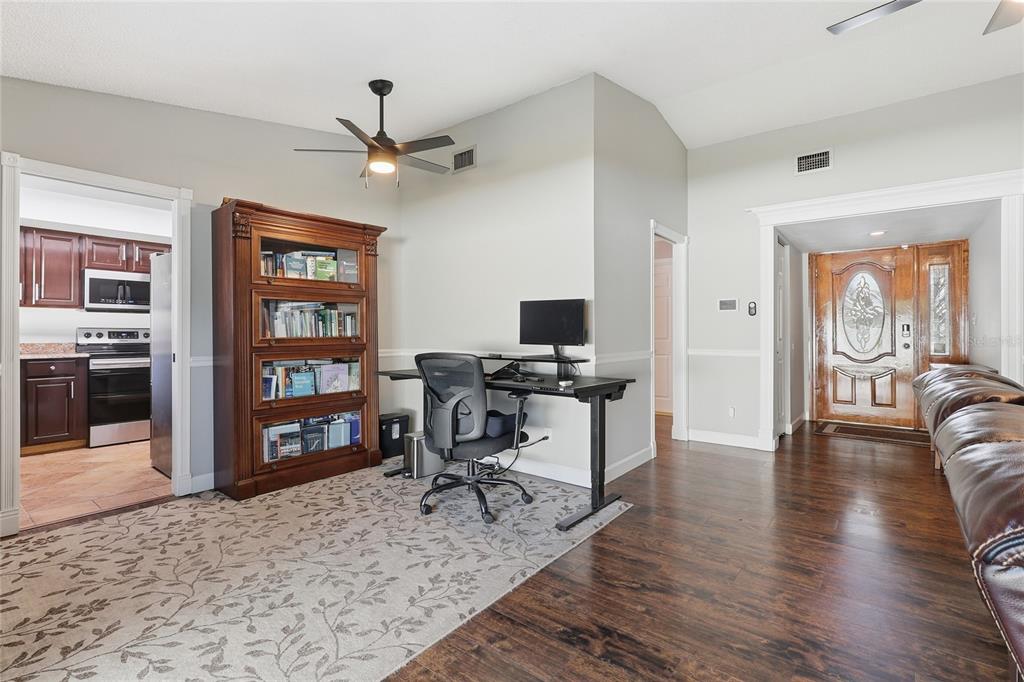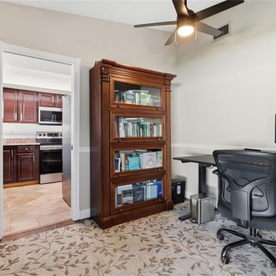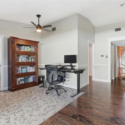 Ceiling Fan(s), Crown Molding, Solid Wood Cabinets, Stone Counters, Window Treatments