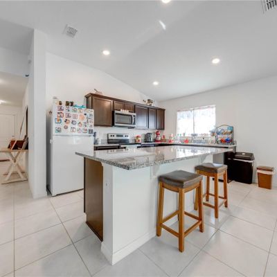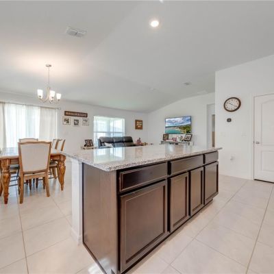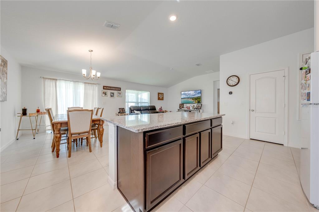 Kitchen/Family Room Combo, Open Floorplan, Solid Wood Cabinets, Stone Counters, Thermostat