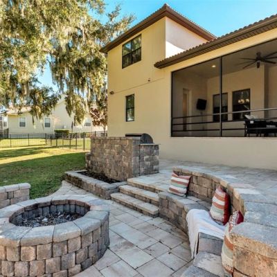 Fire Pit, Outdoor Kitchen, Rain Gutters, Sidewalk, Sliding Doors
